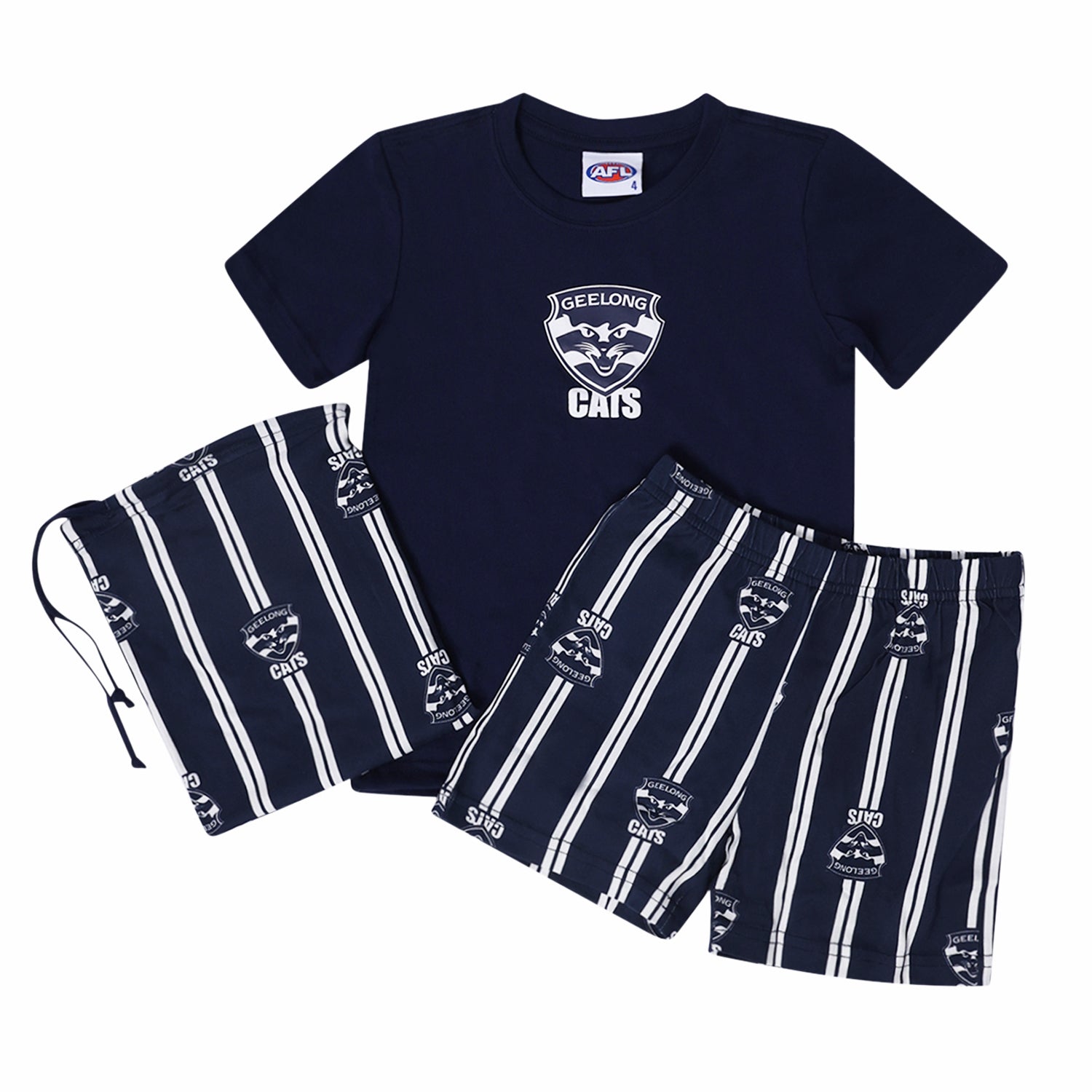 Geelong Cats AFL Youth Game Day Pyjamas 2-Piece PJ Set - Short Sleeve Tee and Shorts - Official Licensed Kids Sleepwear