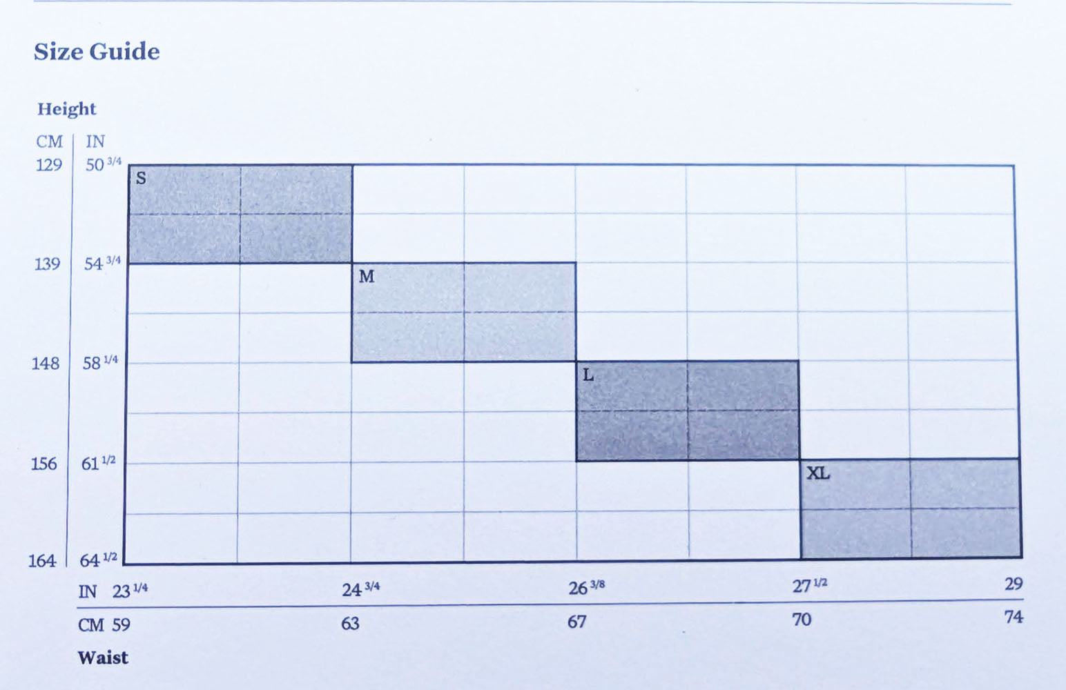 Size Fit Wearer Height (cm) Fit Wearer Waist (cm)